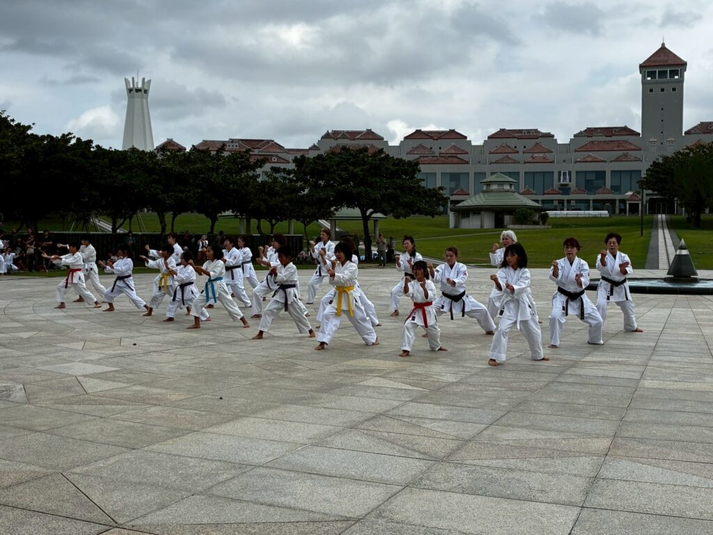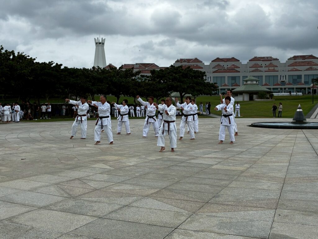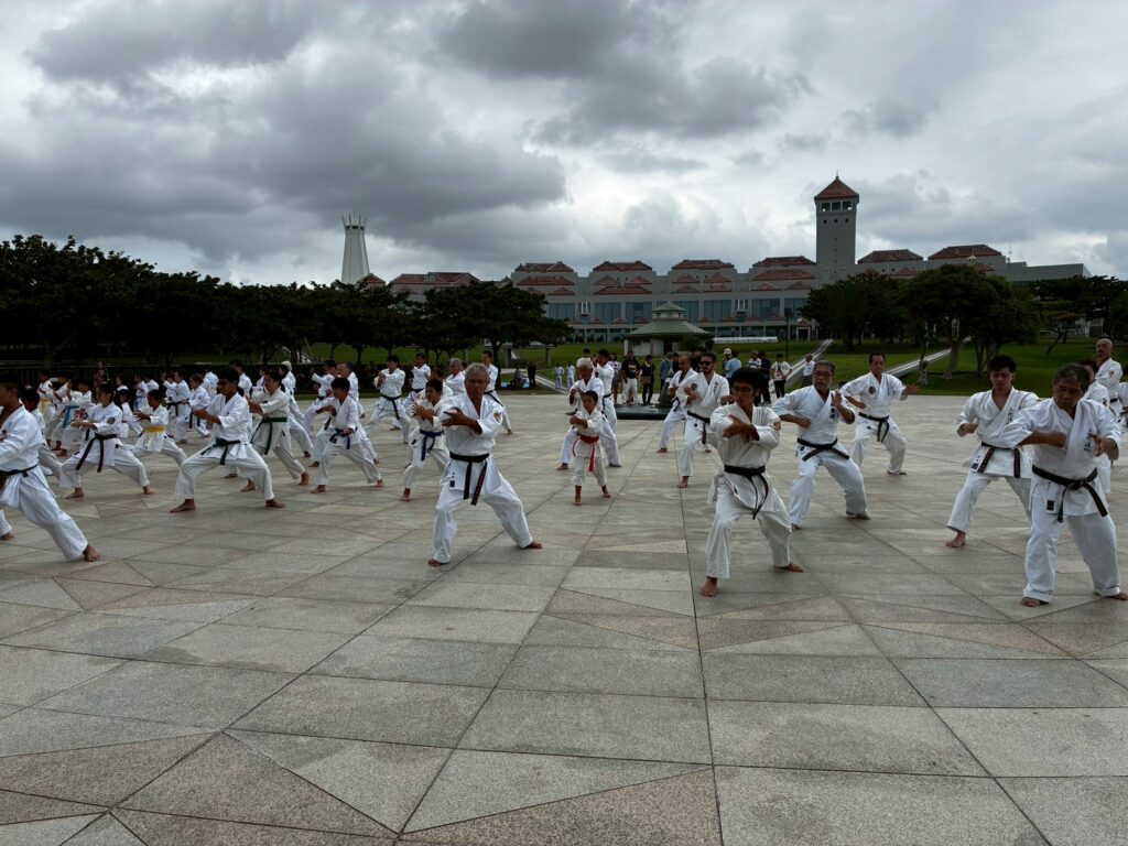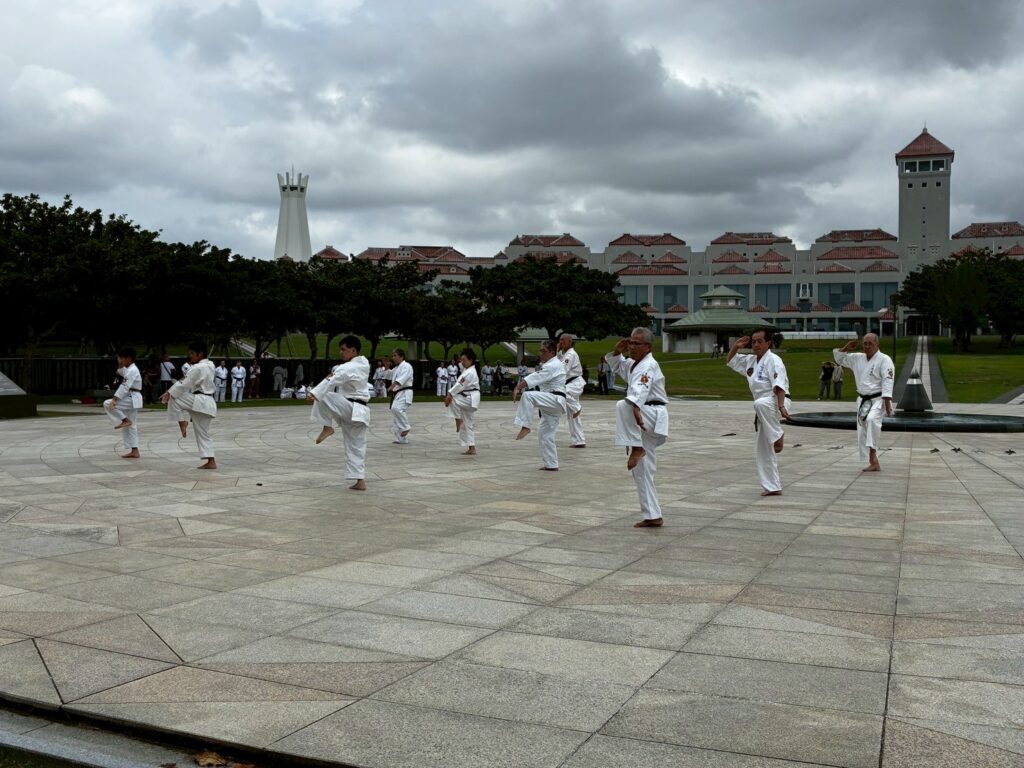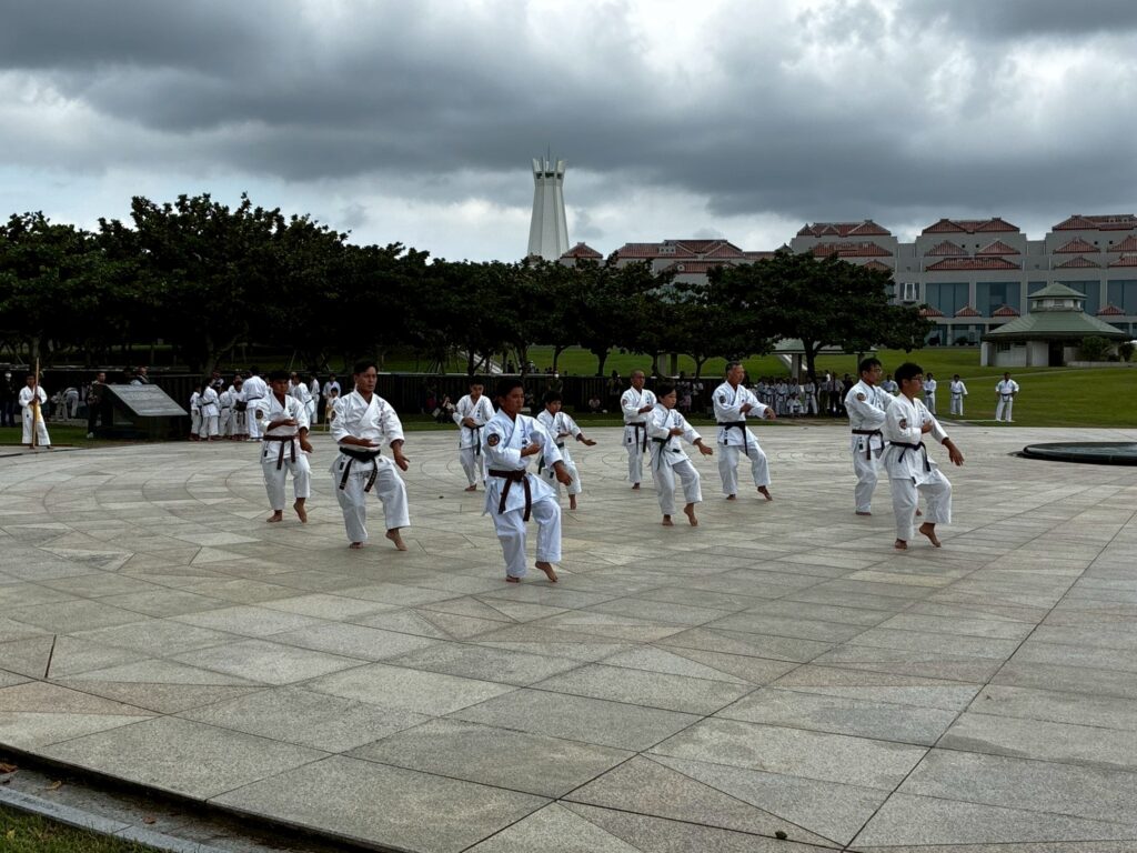 第11回戦没者慰霊奉納演武では、平和の灯前にて10道場84名が参加し、戦没者の御霊を慰霊し再び戦争が起こらないように恒久の平和を願い空手の演武を行いました。