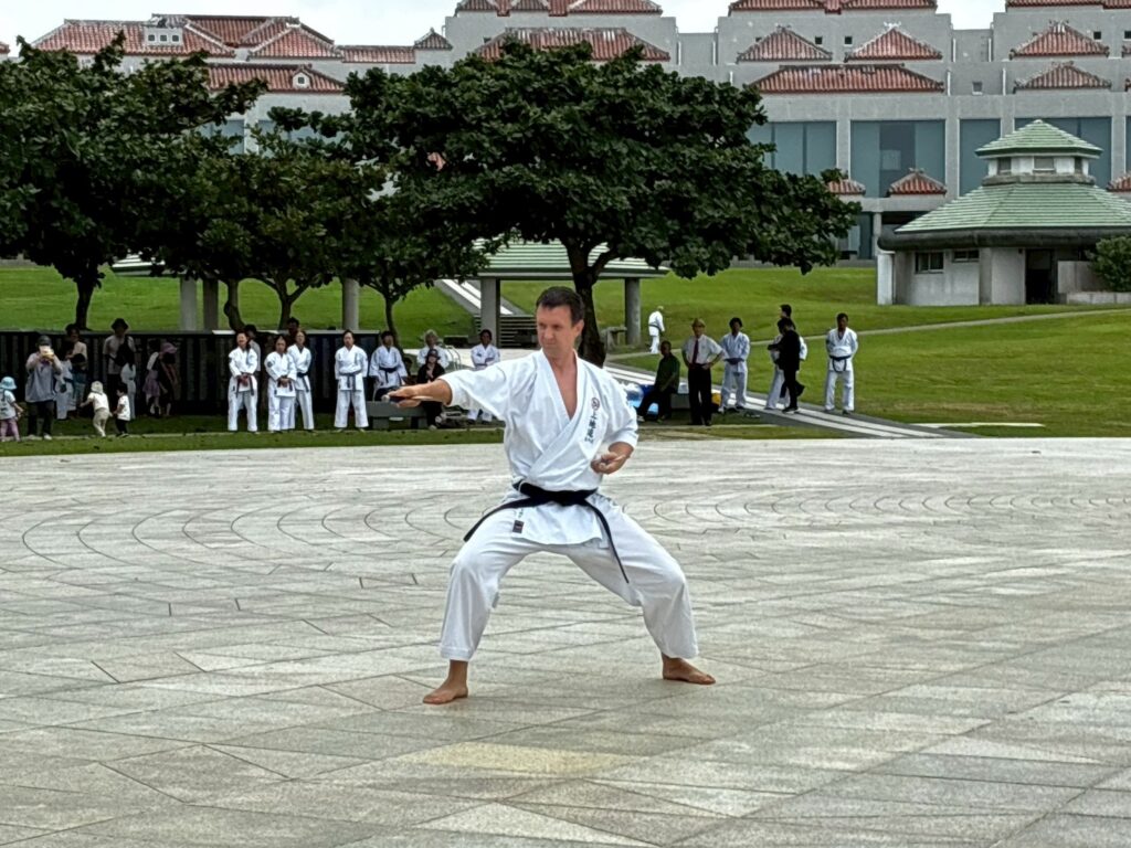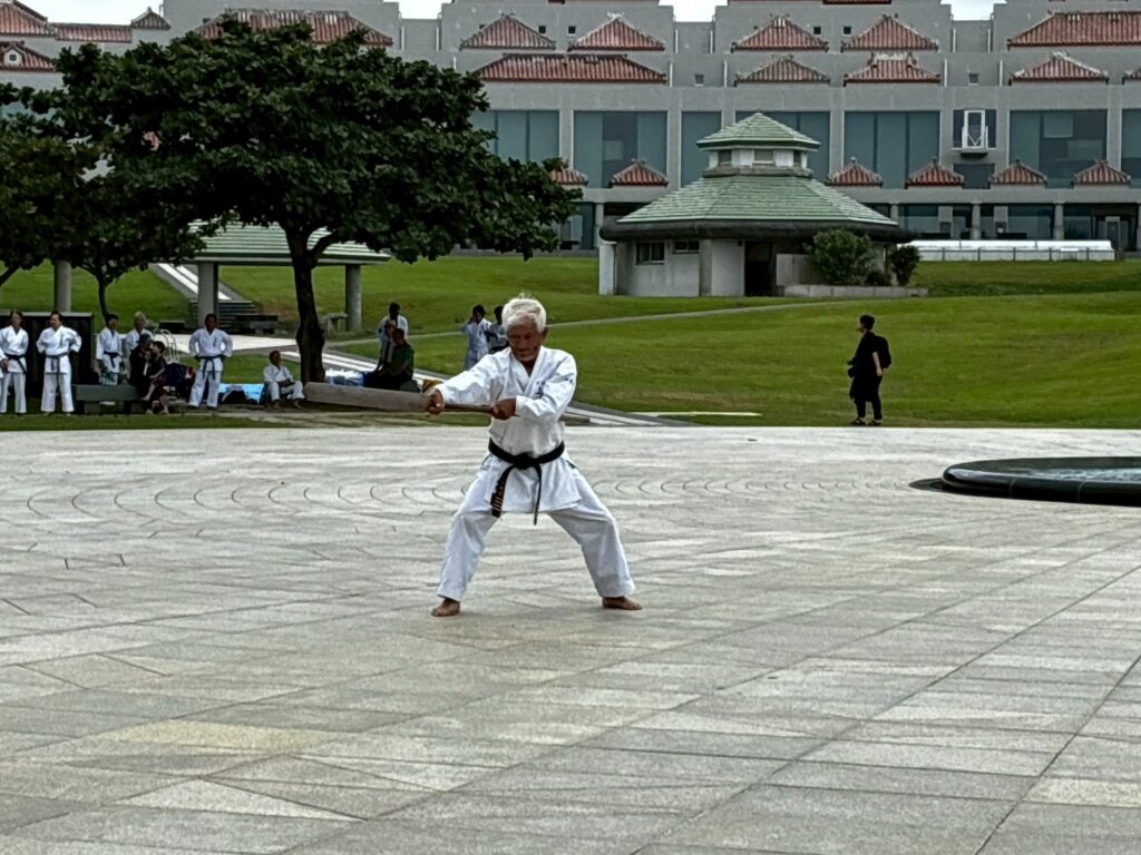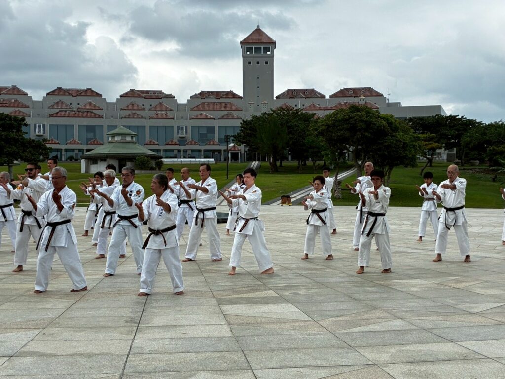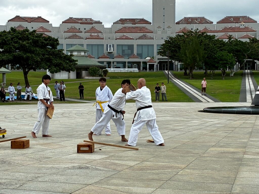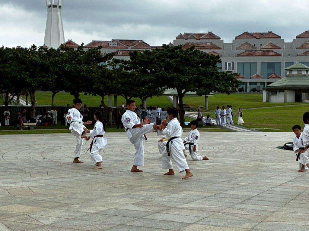 第11回戦没者慰霊奉納演武では、平和の灯前にて10道場84名が参加し、戦没者の御霊を慰霊し再び戦争が起こらないように恒久の平和を願い空手の演武を行いました。