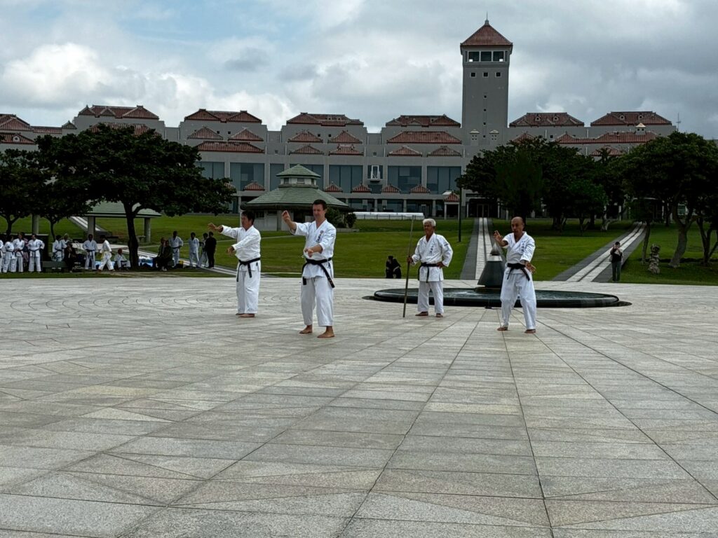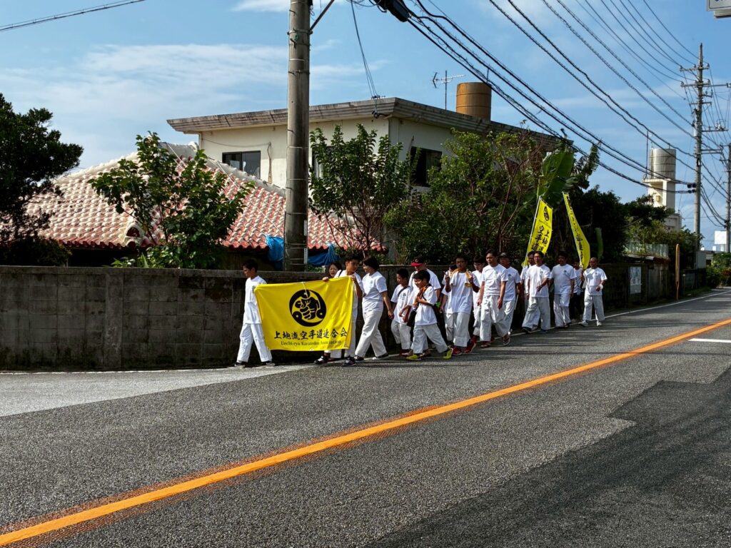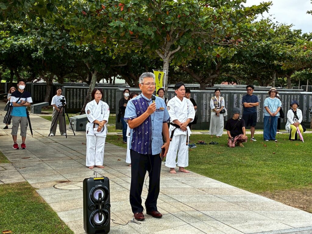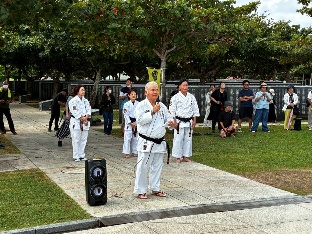 私たち上地流空手連合会は「平和の武」としての空手の精神を重んじ、恒久平和を祈念する機会として慰霊奉納演武の実施前に、糸満市平和都市宣言モニュメントから平和の礎までの平和行進を実施いたしました。