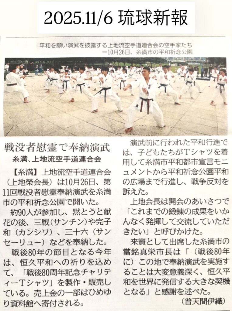 琉球新報紙面にて、先日行われました『第11回戦没者慰霊奉納演武』が掲載されました。
